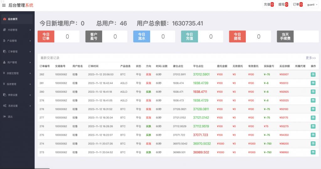 此系统为双语言微盘平台,支持多语言环境,目前已实现双语切换功能,为不同地区用户提供更友好的使用体验。同时,系统已成功对接真实市场数据,确保交易数据的真实性和实时性。此外,对余额宝功能进行了全面重构,优化了收益逻辑与用户交互界面,为用户提供更加便捷、高效的理财服务。